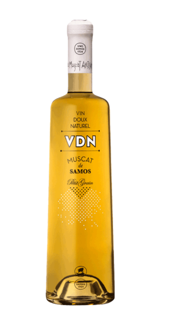Το συγκεκριμένο κρασί προορίζεται για να συνοδεύσει φαγητό, καθώς η περιεκτικότητά του σε σάκχαρα είναι πολύ μικρότερη. Το Samos VDN μπορεί να συνοδεύσει λευκά κρέατα μαγειρεμένα με φρούτα, αλλά και φαγητά με λευκές σάλτσες ή μπεσαμέλ, καθώς και ασιατική κουζίνα σε πιάτα με τσίλι. Μπορεί να συνδυαστεί με γαστρονομικές εμπνεύσεις, όπως οι τάρτες αχλαδιού με ροκφόρ, θαλασσινά λαζάνια με λευκή βελούδινη μπεσαμέλ και σουφλέ τυριών.